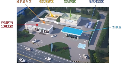 A amônia se decompõe eficientemente em hidrogênio e nitrogênio sob a ação de um catalisador; após a desamoniação e purificação, obtém-se hidrogênio de alta pureza, garantindo uma produção segura. O uso de amônia verde possibilita a produção de hidrogênio com zero emissão de carbono. O hidrogênio é pressurizado, armazenado e dispensado com precisão para veículos por meio de um painel de controle sequencial e um dispensador de hidrogênio, oferecendo uma solução de abastecimento no local eficiente e segura.